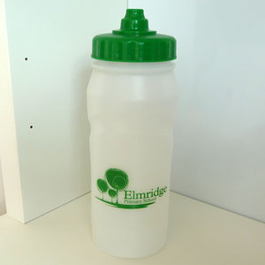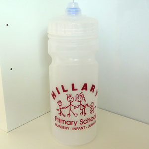 Hillary Primary School 500ml translucent sports bottles and caps.