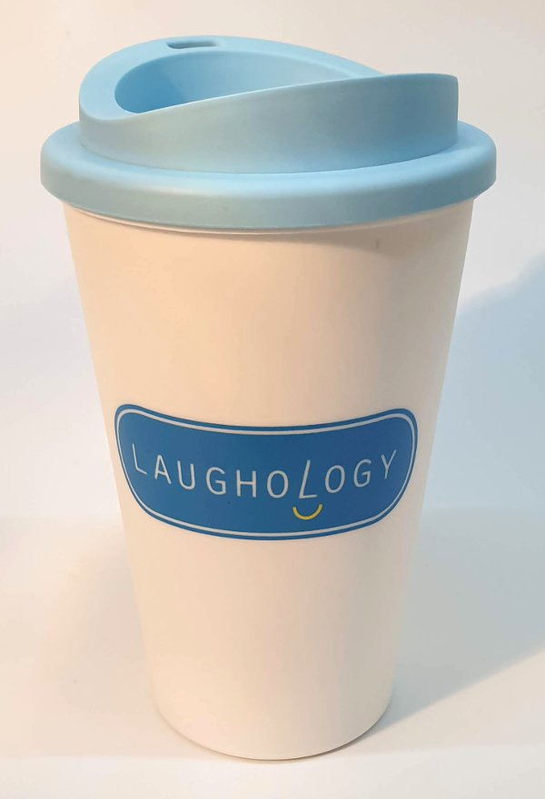 Laughology Universal 350ml re-useable coffee cup; with colour matching lid.