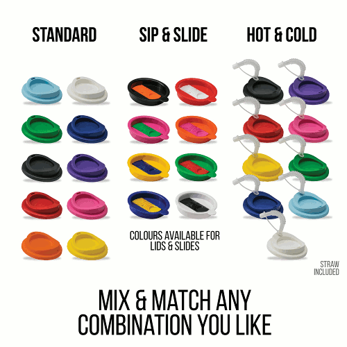 A softline tumbler available in a Wide Range of Colours and lid styles.