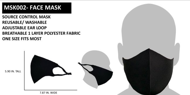 Source control, reusable/washable, mask - to reduce the chance of the wearer spreading infection to others.
